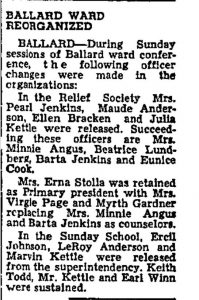 This week in history6/29/1950“Ballard ward reorganized”During Sunday sessions of Ballard ward conference, the following officer changes were made in the organization:In Relief society Mrs.