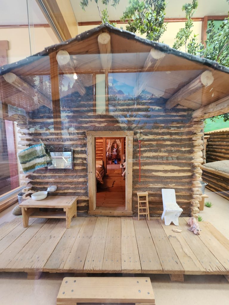 :A diorama made by Fred Pope of a log cabin. The interior is decorated in the style of the era and comes complete with miniature tools. Photo by Kate Belcher
