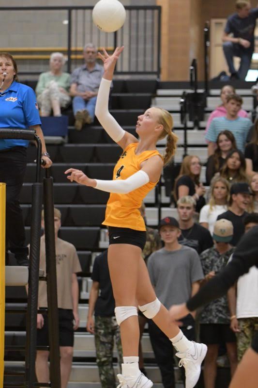 Union’s Justi Cook put the ball over the net in a home match last week. Jaclyn Gardner